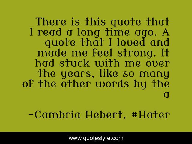 This page presents the quote "There is this quote that I read a long time ago. A quote that I loved and made me feel strong. It had stuck with me over the years, like so many of the other words by the a". Author of this quote is Cambria Hebert, #Hater. This quote is about fierce, rimmel, shakespeare,.