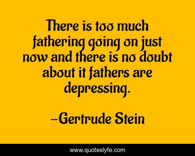 This page presents the quote "There is too much fathering going on just now and there is no doubt about it fathers are depressing.". Author of this quote is Gertrude Stein. This quote is about depressing, doubt, too much,.