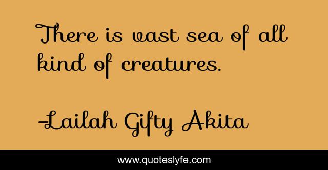 This page presents the quote "There is vast sea of all kind of creatures.". Author of this quote is Lailah Gifty Akita. This quote is about inspirational-life, living-things, oceans, wise-words, sea,.