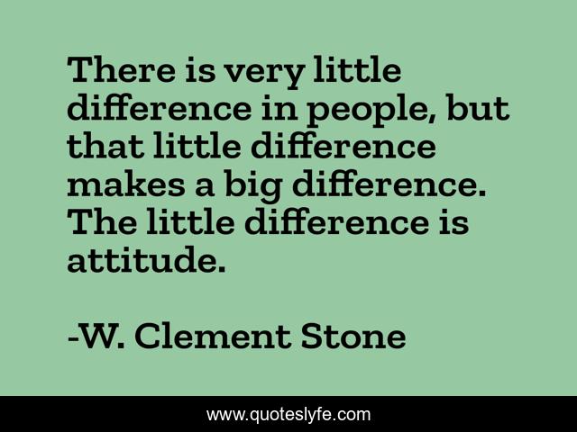 This page presents the quote "There is very little difference in people, but that little difference makes a big difference. The little difference is attitude.". Author of this quote is W. Clement Stone. This quote is about behaviour, attitude, difference,.