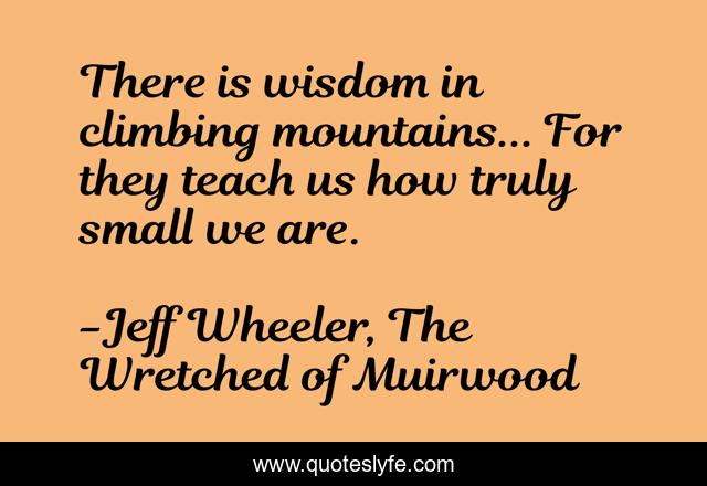 "Jeff Wheeler, The Wretched of Muirwood Quotes." Quoteslyfe.com, 2025. Mon. 08 Dec. 2025. <https://www.quoteslyfe.com/quote/There-is-wisdom-in-climbing-mountains-For-181474>.