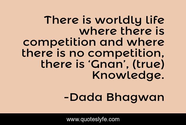 This page presents the quote "There is worldly life where there is competition and where there is no competition, there is ‘Gnan’, (true) Knowledge.". Author of this quote is Dada Bhagwan. This quote is about true-knowlege, gnan, worldly-life, spiritual, competition,.