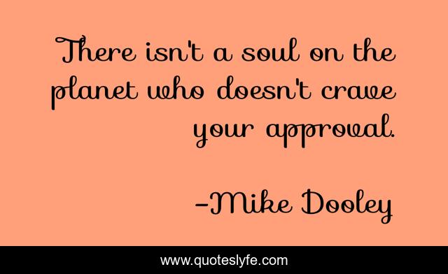This page presents the quote "There isn't a soul on the planet who doesn't crave your approval.". Author of this quote is Mike Dooley. .