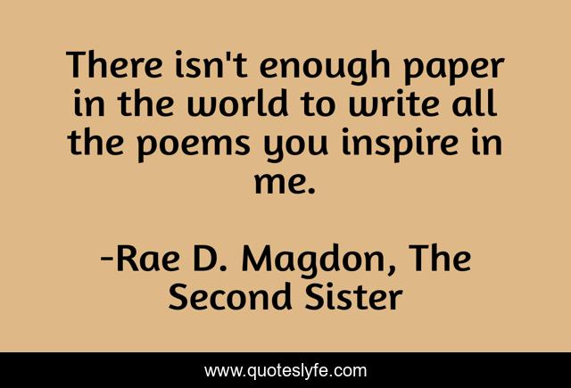 This page presents the quote "There isn't enough paper in the world to write all the poems you inspire in me.". Author of this quote is Rae D. Magdon, The Second Sister. .