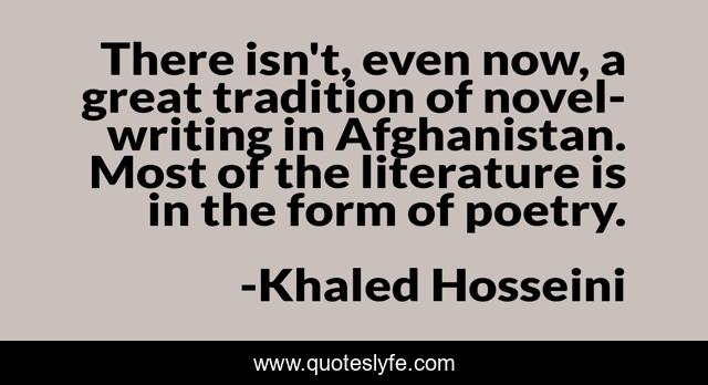 This page presents the quote "There isn't, even now, a great tradition of novel-writing in Afghanistan. Most of the literature is in the form of poetry.". Author of this quote is Khaled Hosseini. This quote is about great, literature, tradition,.