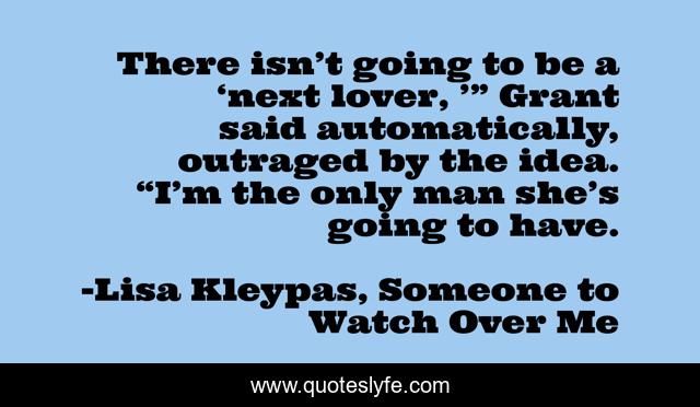This page presents the quote "There isn’t going to be a ‘next lover, ’” Grant said automatically, outraged by the idea. “I’m the only man she’s going to have.". Author of this quote is Lisa Kleypas, Someone to Watch Over Me. This quote is about romance-love, historical-romance, romantic-suspense,.