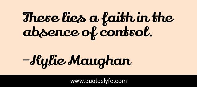 This page presents the quote "There lies a faith in the absence of control.". Author of this quote is Kylie Maughan. This quote is about control, faith, god,.