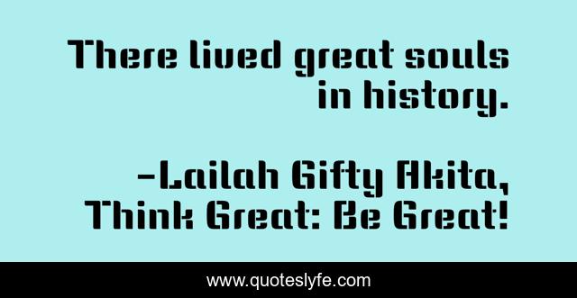"Lailah Gifty Akita, Think Great: Be Great! Quotes." Quoteslyfe.com, 2025. Mon. 08 Dec. 2025. <https://www.quoteslyfe.com/quote/There-lived-great-souls-in-history-70923>.
