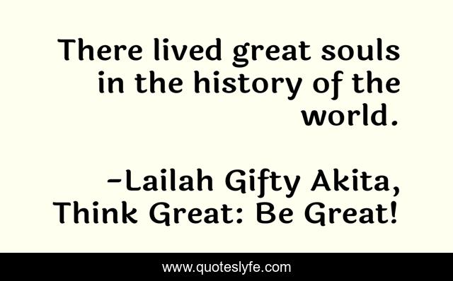 "Lailah Gifty Akita, Think Great: Be Great! Quotes." Quoteslyfe.com, 2025. Mon. 08 Dec. 2025. <https://www.quoteslyfe.com/quote/There-lived-great-souls-in-the-history-70934>.
