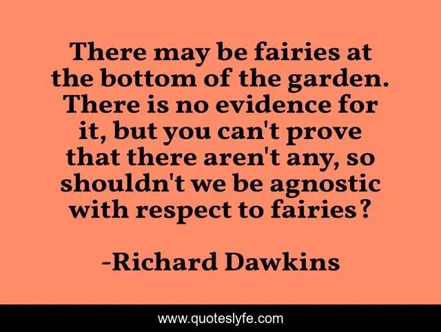 This page presents the quote "There may be fairies at the bottom of the garden. There is no evidence for it, but you can't prove that there aren't any, so shouldn't we be agnostic with respect to fairies?". Author of this quote is Richard Dawkins. This quote is about garden, prove,.