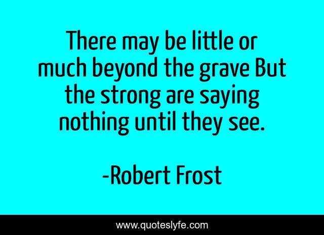 This page presents the quote "There may be little or much beyond the grave But the strong are saying nothing until they see.". Author of this quote is Robert Frost. This quote is about death, dying,.