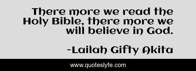 This page presents the quote "There more we read the Holy Bible, there more we will believe in God.". Author of this quote is Lailah Gifty Akita. This quote is about read, bible-study, believe, god,.