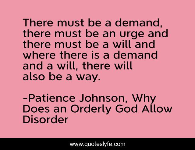 "Patience Johnson, Why Does an Orderly God Allow Disorder Quotes." Quoteslyfe.com, 2025. Fri. 05 Dec. 2025. <https://www.quoteslyfe.com/quote/There-must-be-a-demand-there-must-45923>.