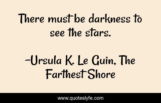 "Ursula K. Le Guin, The Farthest Shore Quotes." Quoteslyfe.com, 2025. Mon. 08 Dec. 2025. <https://www.quoteslyfe.com/quote/There-must-be-darkness-to-see-the-150028>.