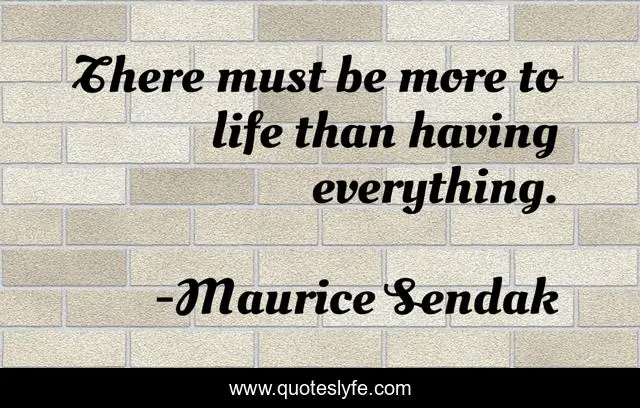 This page presents the quote "There must be more to life than having everything.". Author of this quote is Maurice Sendak. .