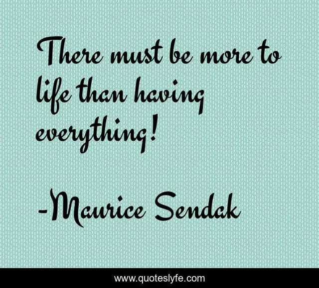 This page presents the quote "There must be more to life than having everything!". Author of this quote is Maurice Sendak. .