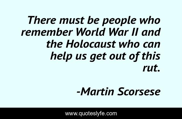 This page presents the quote "There must be people who remember World War II and the Holocaust who can help us get out of this rut.". Author of this quote is Martin Scorsese. This quote is about world, help, remember,.