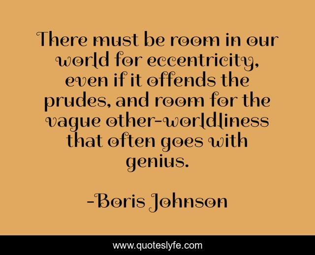 This page presents the quote "There must be room in our world for eccentricity, even if it offends the prudes, and room for the vague other-worldliness that often goes with genius.". Author of this quote is Boris Johnson. This quote is about politics, rosetta,.