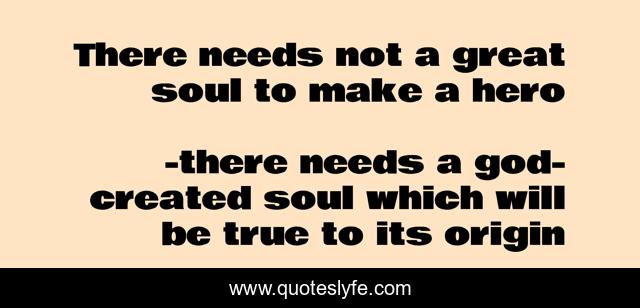 This page presents the quote "There needs not a great soul to make a hero". Author of this quote is there needs a god-created soul which will be true to its origin. .