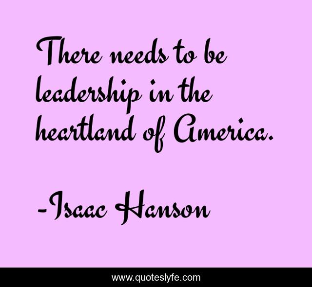 This page presents the quote "There needs to be leadership in the heartland of America.". Author of this quote is Isaac Hanson. This quote is about needs, america,.