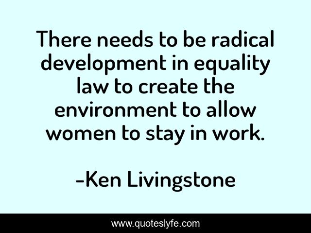 This page presents the quote "There needs to be radical development in equality law to create the environment to allow women to stay in work.". Author of this quote is Ken Livingstone. This quote is about work, law, women,.