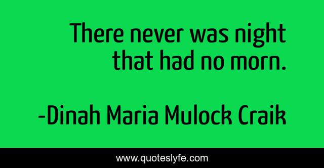 This page presents the quote "There never was night that had no morn.". Author of this quote is Dinah Maria Mulock Craik. .