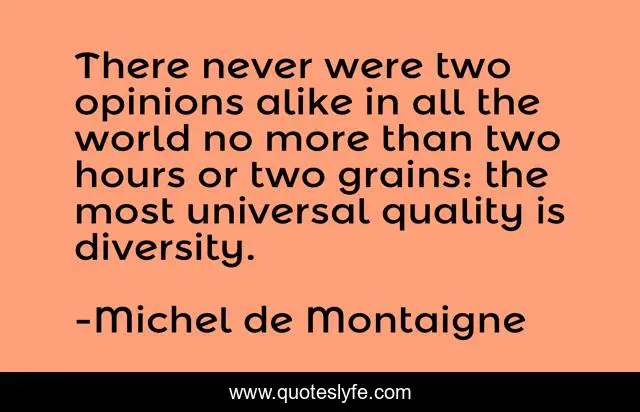 This page presents the quote "There never were two opinions alike in all the world no more than two hours or two grains: the most universal quality is diversity.". Author of this quote is Michel de Montaigne. .