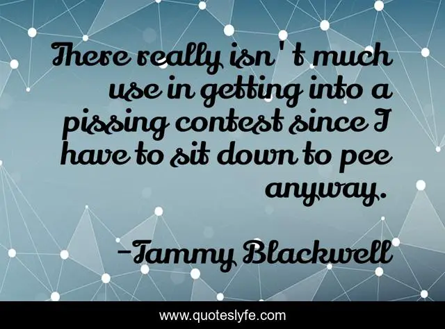 This page presents the quote "There really isn't much use in getting into a pissing contest since I have to sit down to pee anyway.". Author of this quote is Tammy Blackwell. This quote is about funny, comedy,.