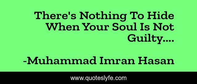 This page presents the quote "There's Nothing To Hide When Your Soul Is Not Guilty....". Author of this quote is Muhammad Imran Hasan. This quote is about heart, hide, consciousness, guilty, soul, honest, contentment, honest-to-your-heart,.
