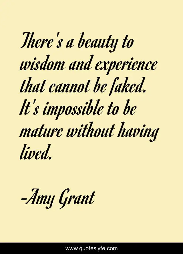 This page presents the quote "There's a beauty to wisdom and experience that cannot be faked. It's impossible to be mature without having lived.". Author of this quote is Amy Grant. This quote is about impossible, beauty, wisdom,.
