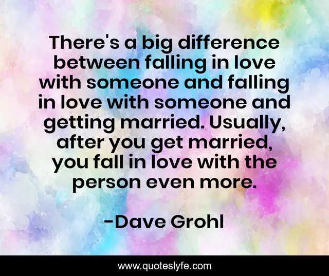 This page presents the quote "There's a big difference between falling in love with someone and falling in love with someone and getting married. Usually, after you get married, you fall in love with the person even more.". Author of this quote is Dave Grohl. This quote is about love, marriage, affection,.