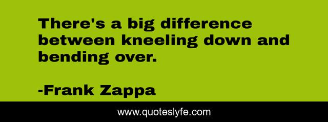 This page presents the quote "There's a big difference between kneeling down and bending over.". Author of this quote is Frank Zappa. .