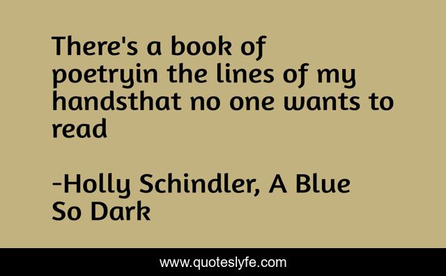 This page presents the quote "There's a book of poetryin the lines of my handsthat no one wants to read". Author of this quote is Holly Schindler, A Blue So Dark. This quote is about a-blue-so-dark, loneliness, poetry,.