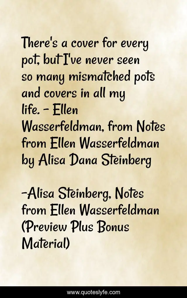 "Alisa Steinberg, Notes from Ellen Wasserfeldman (Preview Plus Bonus Material) Quotes." Quoteslyfe.com, 2025. Fri. 05 Dec. 2025. <https://www.quoteslyfe.com/quote/There-s-a-cover-for-every-pot-35145>.