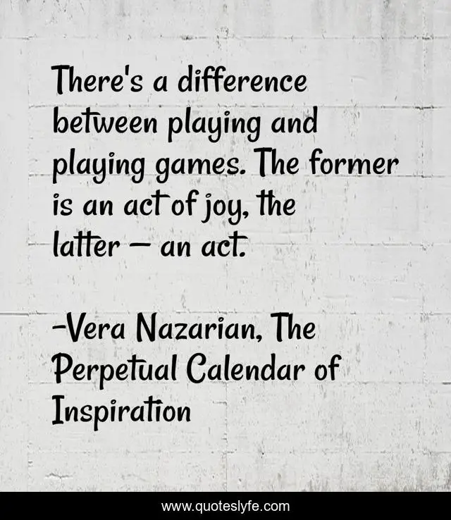 "Vera Nazarian, The Perpetual Calendar of Inspiration Quotes." Quoteslyfe.com, 2025. Fri. 05 Dec. 2025. <https://www.quoteslyfe.com/quote/There-s-a-difference-between-playing-and-167293>.