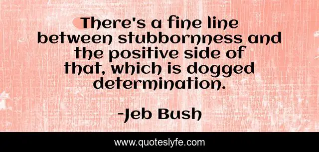 This page presents the quote "There's a fine line between stubbornness and the positive side of that, which is dogged determination.". Author of this quote is Jeb Bush. This quote is about determination, line, fine,.