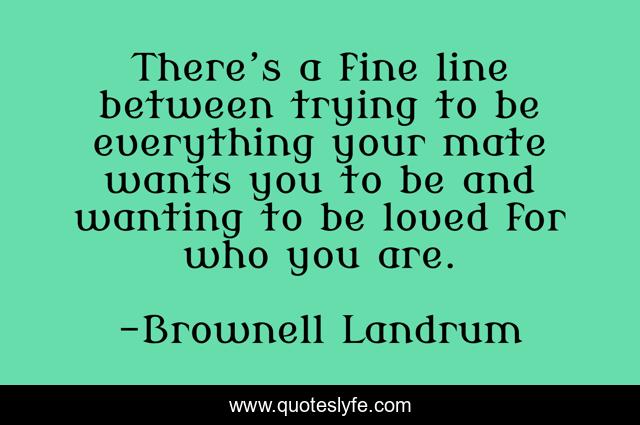 This page presents the quote "There’s a fine line between trying to be everything your mate wants you to be and wanting to be loved for who you are.". Author of this quote is Brownell Landrum. This quote is about loved, love, duet-stories, acceptance, mate, change, brownell-landrum, affection,.