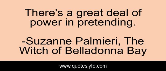 This page presents the quote "There's a great deal of power in pretending.". Author of this quote is Suzanne Palmieri, The Witch of Belladonna Bay. This quote is about delusions, truth-of-life, pretending,.