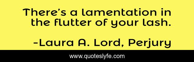 This page presents the quote "There’s a lamentation in the flutter of your lash.". Author of this quote is Laura A. Lord, Perjury. This quote is about loss, love, poem, poetry, grief, affection,.