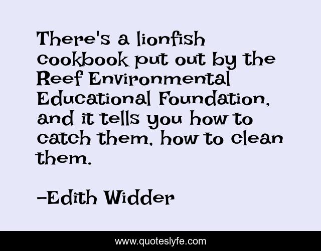 This page presents the quote "There's a lionfish cookbook put out by the Reef Environmental Educational Foundation, and it tells you how to catch them, how to clean them.". Author of this quote is Edith Widder. This quote is about foundation, clean,.