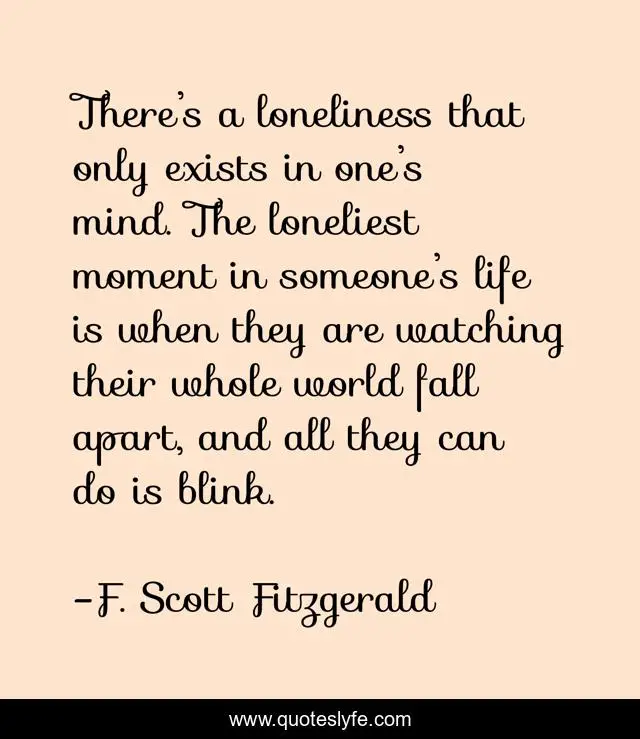 This page presents the quote "There’s a loneliness that only exists in one’s mind. The loneliest moment in someone’s life is when they are watching their whole world fall apart, and all they can do is blink.". Author of this quote is F. Scott Fitzgerald. This quote is about fitzgerald, loneliness, scott, f,.