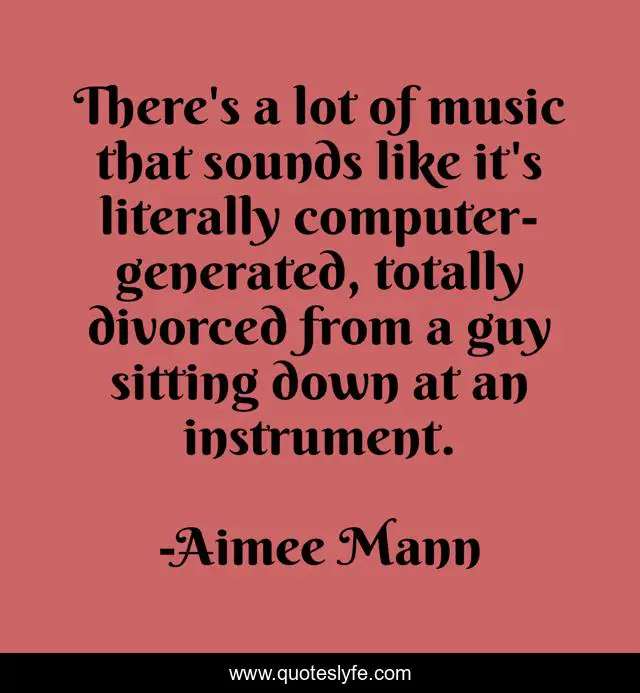 This page presents the quote "There's a lot of music that sounds like it's literally computer-generated, totally divorced from a guy sitting down at an instrument.". Author of this quote is Aimee Mann. This quote is about down, divorced, sitting,.