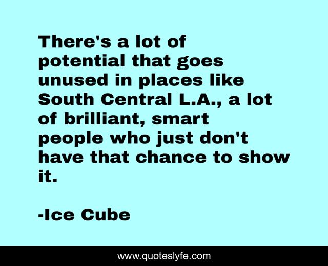 This page presents the quote "There's a lot of potential that goes unused in places like South Central L.A., a lot of brilliant, smart people who just don't have that chance to show it.". Author of this quote is Ice Cube. This quote is about potential, smart, people,.
