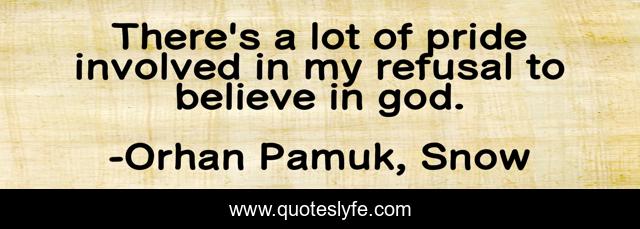 This page presents the quote "There's a lot of pride involved in my refusal to believe in god.". Author of this quote is Orhan Pamuk, Snow. This quote is about atheism, god, pride, belief,.