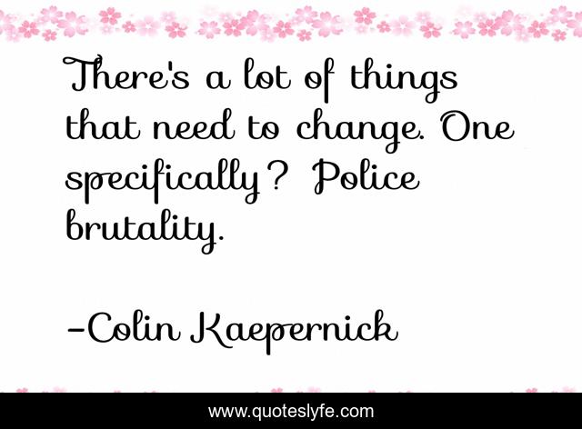 This page presents the quote "There's a lot of things that need to change. One specifically? Police brutality.". Author of this quote is Colin Kaepernick. This quote is about need, things, police,.