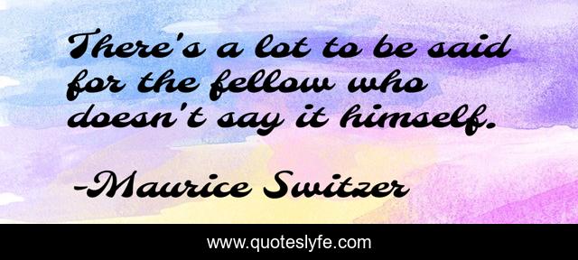 This page presents the quote "There's a lot to be said for the fellow who doesn't say it himself.". Author of this quote is Maurice Switzer. This quote is about humbleness, humble, silence,.