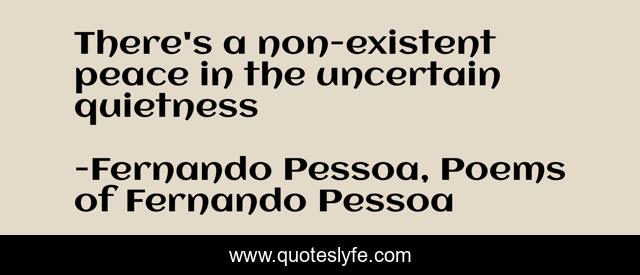 This page presents the quote "There's a non-existent peace in the uncertain quietness". Author of this quote is Fernando Pessoa, Poems of Fernando Pessoa. This quote is about quietness, peace, doubtful,.