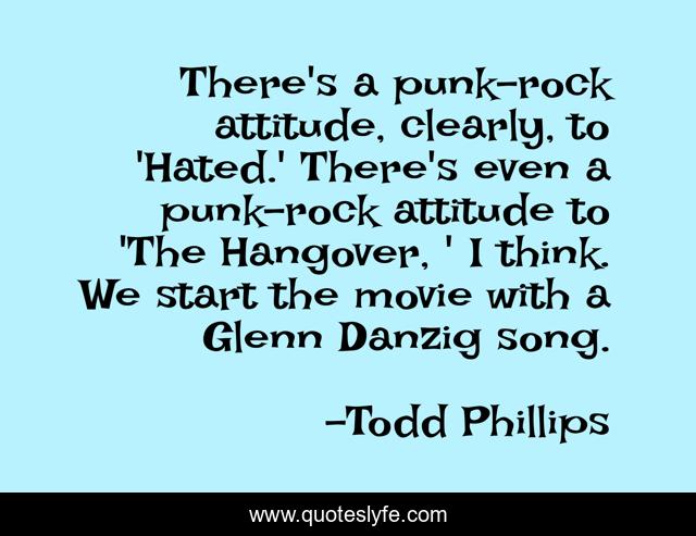 This page presents the quote "There's a punk-rock attitude, clearly, to 'Hated.' There's even a punk-rock attitude to 'The Hangover, ' I think. We start the movie with a Glenn Danzig song.". Author of this quote is Todd Phillips. This quote is about start, think, song,.