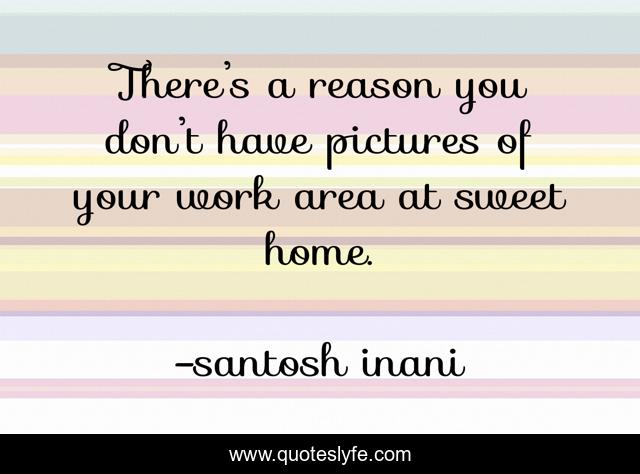 This page presents the quote "There’s a reason you don’t have pictures of your work area at sweet home.". Author of this quote is santosh inani. This quote is about home, picture, work, relax,.