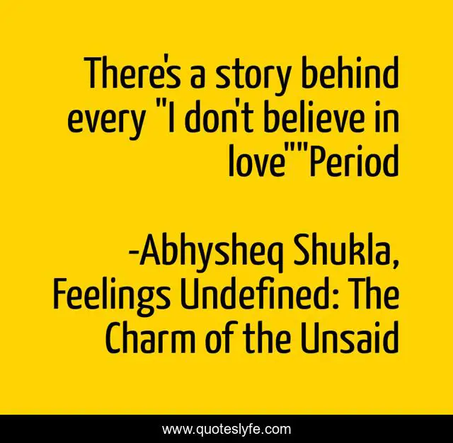 "Abhysheq Shukla, Feelings Undefined: The Charm of the Unsaid Quotes." Quoteslyfe.com, 2025. Fri. 05 Dec. 2025. <https://www.quoteslyfe.com/quote/There-s-a-story-behind-every-I-34201>.